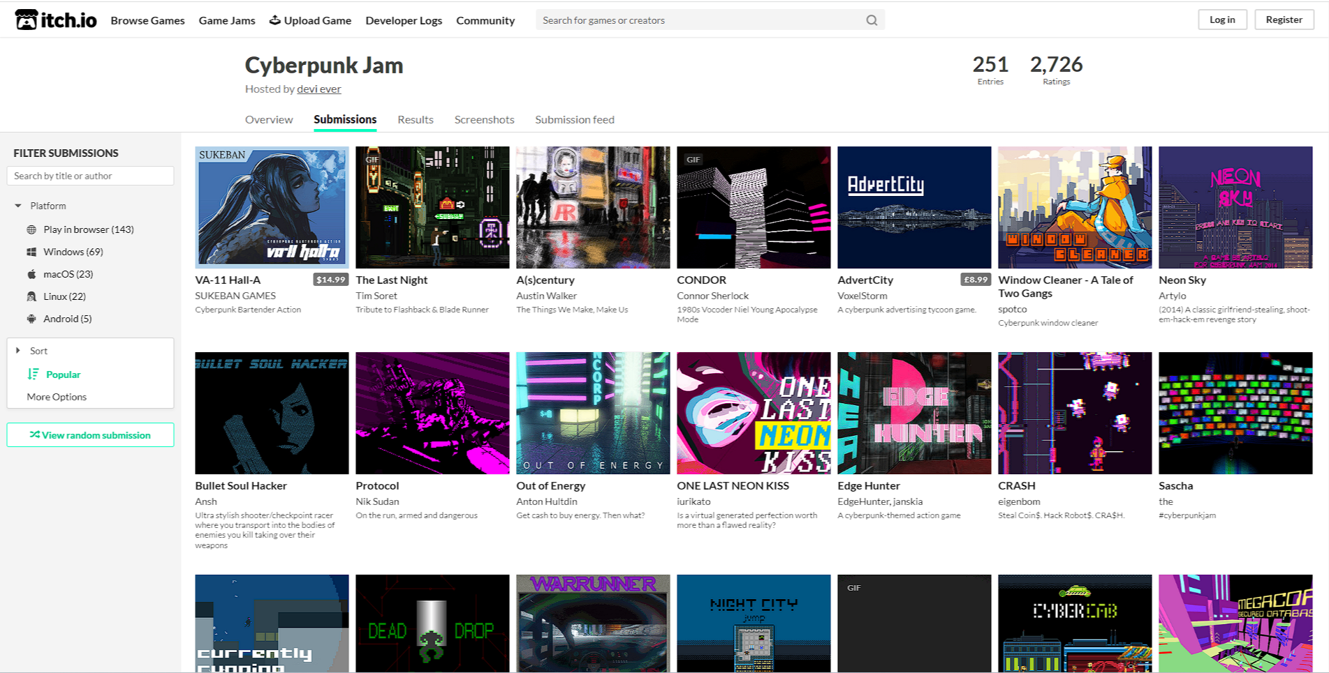 Va-ll Hall-A는 원래 2014년 itch.io에서 개최되었던 사이버펑크 게임잼을 위해 제작했던 게임이다.